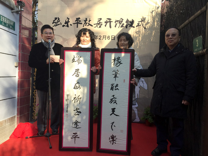 开馆仪式于2月6日上午9时在五原路288弄举行,由上海市徐汇区人民政府主办。仪式由曹可凡主持,电影《三毛流浪记》三毛演员王龙基、电影《三毛从军记》导演张建亚、张乐平之子张慰军、名人故居筹建组组长宋浩杰先后发言,张乐平女儿张晓、张朵朵为故居挂上国画大师陈佩秋的春联。上海市政府副秘书长宗明、中共徐汇区委书记莫负春共同为故居揭幕,国画大师戴敦邦和“小三毛”共同开启故居之门。