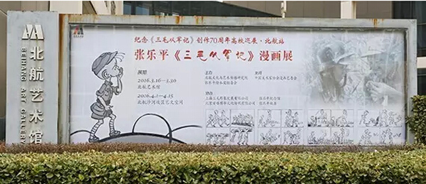 首站在北京航空航天大学北航艺术馆正式开展,包括70余组“三毛从军记”主题及抗战题材漫画作品,以及电影《三毛从军记》。展览由北航文化与艺术传播研究院、张乐平绘本奖组委会主办,中国美术家协会漫画艺委会支持,上海三毛形象发展有限公司、北京方略博华文化传媒有限公司、张乐平纪念馆和张乐平故居协办。北航艺术馆展期为3月16日起至3月30日结束,并将于4月1日至4月14日移至北航沙河校区艺文空间展出。随后,展览还将赴全国其它高校进行巡展。