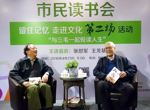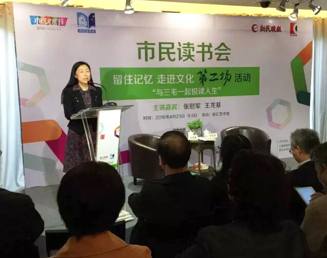4月23日是世界读书日,由新民晚报与世纪出版集团主办、上海市民文化协会、徐汇区文化局承办的市民读书会“与三毛一起悦读人生”,邀请漫画家张乐平之子张慰军、三毛扮演者王龙基与通过夜光杯微信报名成功的读者,在徐汇艺术馆如约展开。