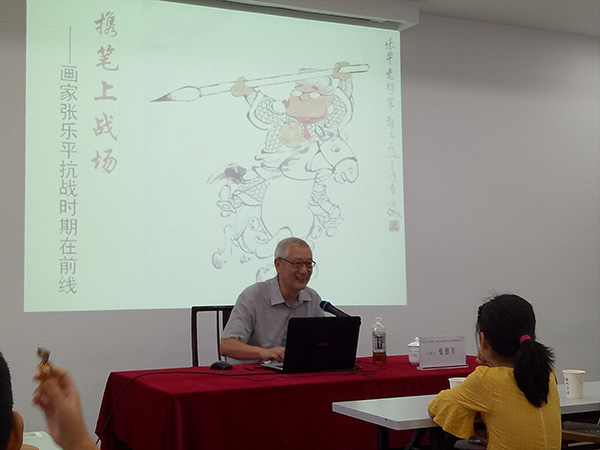 7月12日,《携笔上战场——画家张乐平抗战时期在前线》讲座在浙江海宁张宗祥书画院举办。此次讲座主讲人张慰军,讲述了抗日战争期间,他的父亲张乐平辗转各地,以画笔为武器宣传抗日的经历和他的抗日作品。