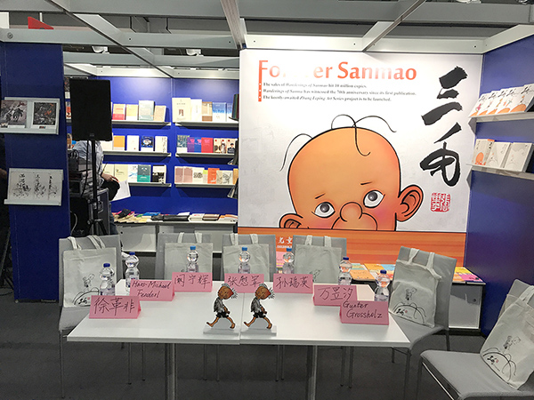 三毛动漫在书展中引来诸多欧洲出版人的驻足,漂洋过海”的三毛向世界展示了中式漫画瑰宝之美。此次书展由法兰克福书展公司主办,11日起对外开放,将于15日闭幕。