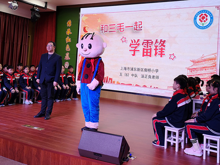 为深入开展学雷锋活动,推送学雷锋活动常态化,大力弘扬雷锋精神,共同传承和发扬红色文化和爱国主义精神。3月5日上午,由共青团上海市委员会指导,上海市青少年发展基金会、上海市希望工程办公室、中华雷锋网、雷锋杂志社、上海三毛形象发展有限公司等主办的学雷锋全国网络主题班会,在浦东新区御桥小学举行,超过12万全国中小学生收看了此次直播。