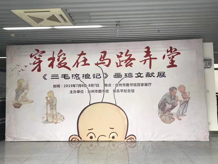 7月8日,“穿梭在马路弄堂——《三毛流浪记》画稿文献展”在浙江省台州市图书馆百家展厅展出,本次展览挑选了100幅《三毛流浪记》中的原作高仿品,展览至8月7日结束。《三毛流浪记》被誉为“没有文字的文学巨作”,读者认为张乐平用形象来表现,既有淋漓尽致的描写,又有使人感到震撼的画面,以及具有强大的激发人们同情心和正义感的感染力。本次展览由台州图书馆、张乐平纪念馆主办。