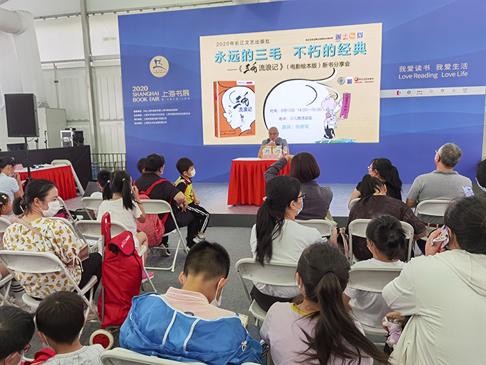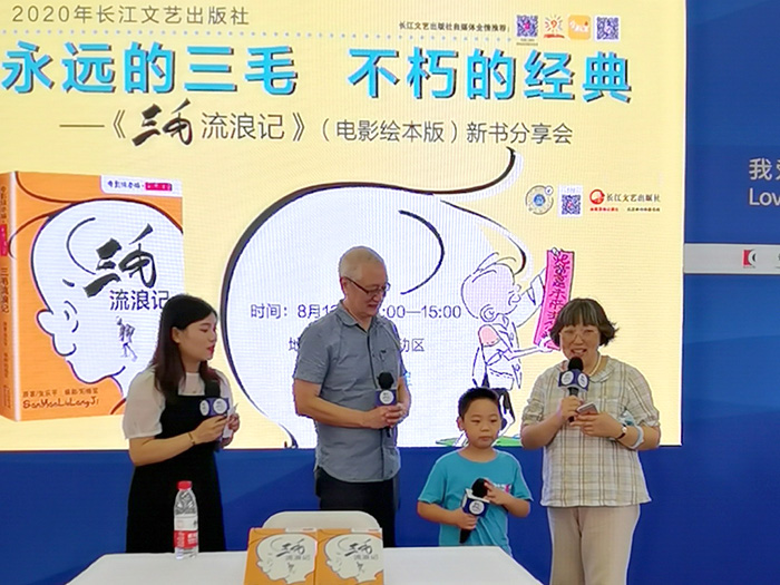 8月13日,长江文艺出版社就全新推出了的《三毛流浪记》(电影绘本版),在上海书展进行了新书分享会。开拍于1949年4月1日的电影《三毛流浪记》,作为新中国成立后的第一部在上海公映的影片,成为所有的中国人心中的不朽经典。此次活动邀请“三毛之父”张乐平的儿子张慰军先生,为大家讲述“三毛”这个经典系列创作背后的故事。张慰军在售书环节耐心地送给了每位小读者独一无二的寄语,他殷切地鼓励当今的小朋友们向三毛学习,学习他那饱受苦难依旧坚强不屈、积极向上和屡战屡败、屡败屡战的精神。老中青三代的“三毛”粉丝们也纷纷上台,向大家讲述了自己与三毛的邂逅、对三毛的了解以及阅读《三毛流浪记》后的感悟。
