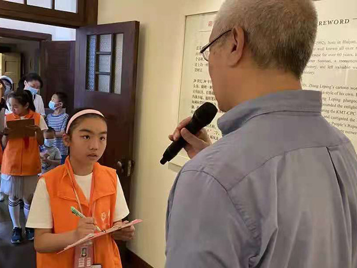 6月5日,徐汇区青少年活动中心和上海教育电视台共同组建的徐汇小记者团在老师的带领下,走进张乐平故居,进行面对面的采访实践课程。在张乐平的儿子张慰军爷爷的带领下,小记者们参观了张乐平故居。走进这座充满文化气息的小洋房,扑面而来的漫画作品让小记者们目不暇接。在张慰军爷爷的讲述下,小记者们了解到了张乐平所画的抗战漫画以及“三毛”这一经典创作背后的故事,感受到了这一幅幅画中所蕴含的爱国热情。