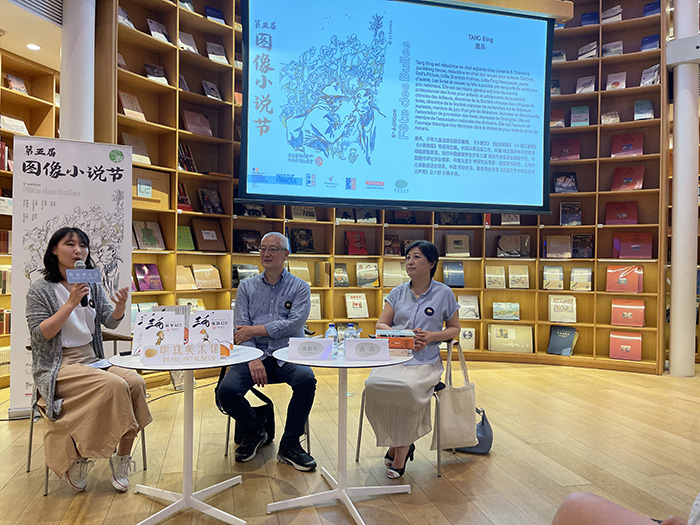 6月6日,2021年第五届图像小说节——“第九艺术”走进美术馆,张乐平幼子张慰军和少儿社副总编唐兵来到明珠美术馆与新华书店之间的“光的空间”进行圆桌对谈,述说“海派漫画经典:三毛的法国漫画节之旅”。通过线下中国嘉宾和线上法国嘉宾连线对谈的方式,与读者们进行近距离分享和沟通。本次图像小说节由法国驻华大使馆发起。
