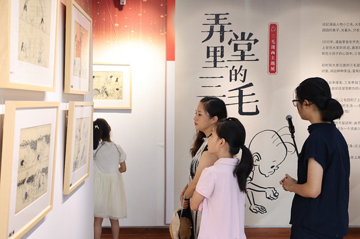 书香飘出深弄,画景融入水乡。8月16日上午,在位于枫泾镇的丁聪美术馆,“上海弄堂里的三毛”——三毛漫画系列主题展开展,展期一周。现场展览了54幅漫画手稿,介绍了三毛在上海弄堂里发生的有趣故事,带领读者走进不一样的三毛生活。
