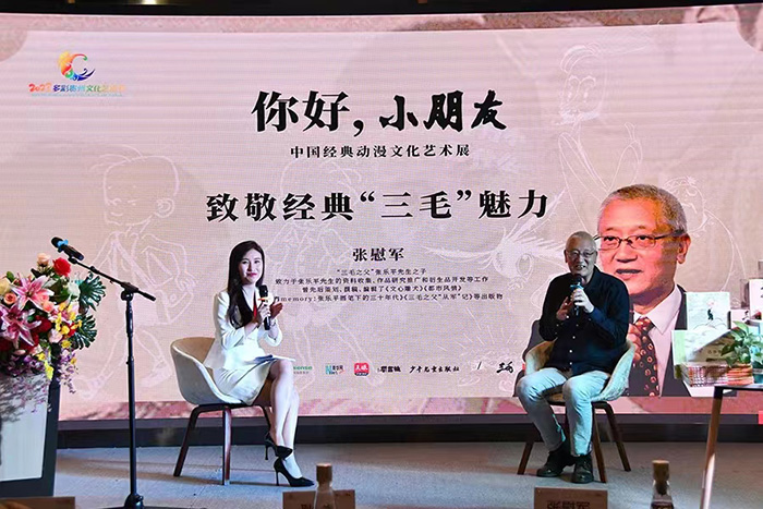 当日,举办了动漫手稿展、线下沙龙、图书签售及名家分享会等活动。漫画家张乐平先生之子张慰军就“致敬经典 读懂‘三毛’”主题进行了分享。
