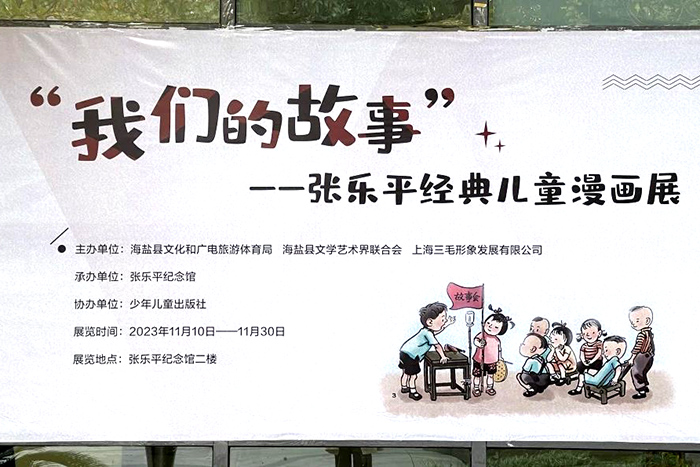11月10日,由海盐县文化和广电旅游体育局、海盐县文学艺术界联合会和上海三毛形象发展有限公司主办,张乐平纪念馆承办,少年儿童出版社协办的《我们的故事》张乐平经典儿童漫画展在海盐县张乐平纪念馆开展。展览时间至11月30日,此后将在海盐县各中小学校内进行巡展。