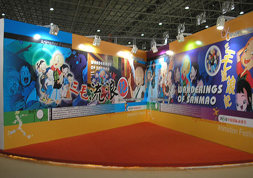 第二届中国国际动漫节暨第二届中国国际动漫产业博览会在杭州市国际会议展览中心举办。中国国际电视总公司辉煌动画公司、中央电视台青少节目中心动画部制作的动画片《三毛》的展区占中国中央电视台主展区面积的五分之一,衍生产品占其副展区8个展柜,另有140平方米相关产品的展示和专卖,并免费发送手提袋40000件,十分引人注目。