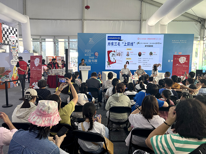 8月13日上海书展首日,由长江文艺出版社、上海电影(集团)有限公司、上海三毛形象发展有限公司联合举办的“所有三毛‘上前线’——《三毛流浪记》电影绘本版暨《烽火硝烟中的张乐平漫画》新书全国首发”活动圆满举行。本次活动以“经典IP新传承,温故知新读三毛”为核心亮相上海书展,吸引了众多读者齐聚活动现场,在温馨互动中共同追溯三毛经典形象的文化根脉,深切感受三毛精神的时代温度。