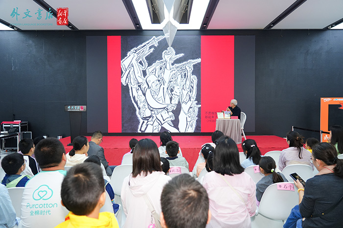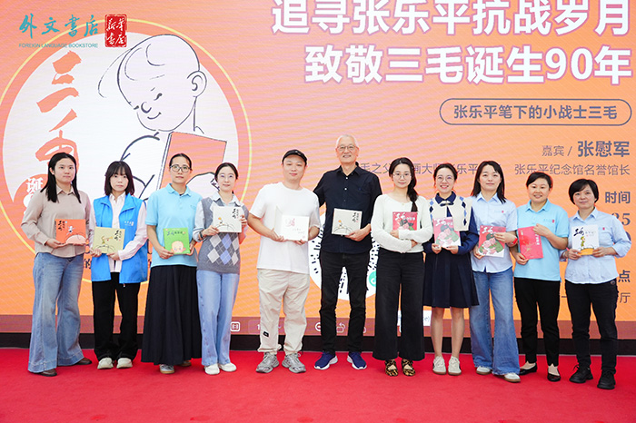 9月20日上午,作为“书香长江”阅读周湖北省外文书店分会场系列活动之一,“阅界大讲坛:追寻张乐平抗战岁月——三毛诞生90周年阅读分享会”举行。“三毛之父”张乐平先生之子张慰军与读者汇聚一堂,共同回望三毛与时代共鸣的岁月。张慰军还特别谈到父亲张乐平1938年在武汉黄鹤矶头创作抗战题材巨幅宣传壁画的经历,现场投影再现了历史照片——张乐平于烽火岁月中坚持作画的身影,深深打动了在场读者。他说,父亲始终用画笔参与抗战、记录民生,三毛正是在这样的时代背景下逐渐成长为承载民族记忆的文化符号。