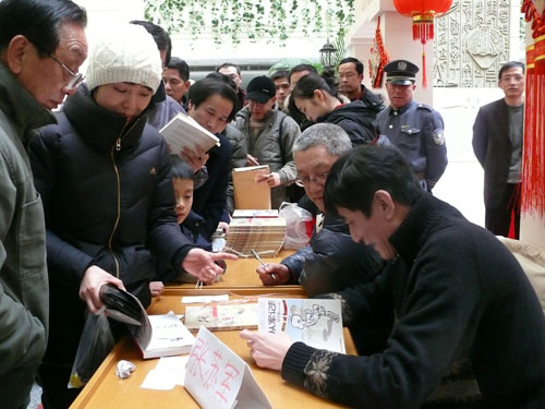 上海图书馆从200余件馆藏老上海漫画文献中挑选而出,介绍了包括张乐平在内的10位在上海近现代漫画史上具有较大影响的中外老漫画家的生平和代表作,揭示了20世纪上半叶的上海漫画史。张乐平之子张苏军、张慰军于2月12日在展览现场签售《三毛之父“从军”记》及《三毛从军记》、《三毛流浪记》中英文对照限量版图书。