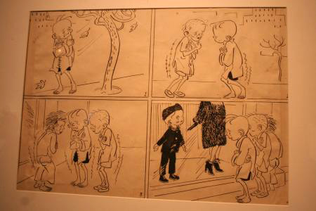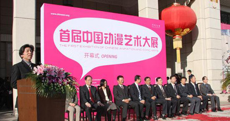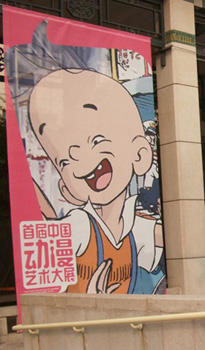 由文化部、财政部、教育部、科技部、工业部和信息化部、商务部、工商总局、税务总局、广电总局和新闻出版总署等十部委联合主办,在中国美术馆展出,这是一次国家级、高水平、专业化、综合性的动漫艺术盛会。“三毛”大幅宣传牌竖立在紧靠大门的显著位置。展览的我国动漫艺术发展史上具有重要地位的名家作品中,有张乐平先生的画稿。