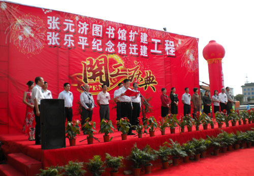 浙江省海盐县今年重要的文化建设项目:张元济图书馆扩建和张乐平纪念馆迁建工程开工仪式在6月1日举行。县领导沈晓红、姚沈良、盛勇军、田林华、张梁、许琳、朱锡君以及嘉兴市文化局局长王鸣霞、张元济先生后人张人凤、张乐平先生后人张融融、北京商务出版社领导等出席了开工典礼。迁建张乐平纪念馆为地上两层、局部夹层,建筑面积1926.14平方米。