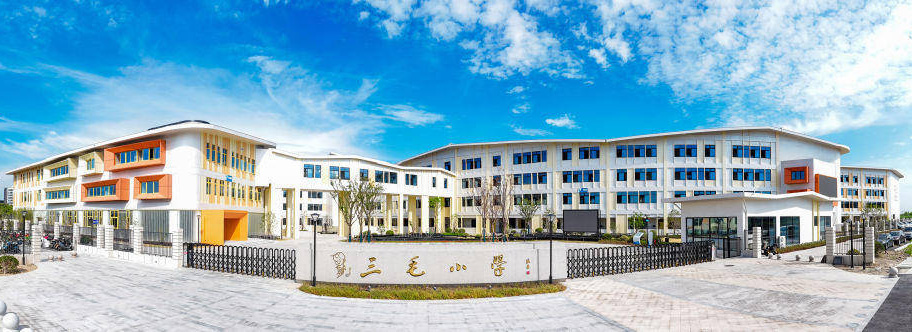 这是一座现代化的花园式学校,教学设备先进,师资力量雄厚。办学目标是“办规范加特色学校,育合格加特长学生”。 三毛小学是以张乐平先生笔下漫画人物“三毛”命名的小学,是由“教育部中国教师发展基金会”正式授牌的“全国特色学校”。学校秉持“走特色之路,创一流品牌”的办学思想,推进三毛“善美”课程体系的架构与实践,逐步形成了“漫画”“网球”“信息技术”“心理健康”等特色项目。该校是“张乐平纪念馆儿童漫画教育基地”,先后获评中国国际动漫人才培养计划教学实验学校、浙江省示范小学、浙江省艺术教育特色学校、浙江省国防教育先进单位等荣誉称号。“张乐平艺术中心”位于三毛小学的艺术楼内。在张乐平艺术中心,三毛元素遍布各个角落,展示了乐平与三毛、乐平与三毛漫画、乐平与孩子、乐平与三毛小学的珍贵瞬间。