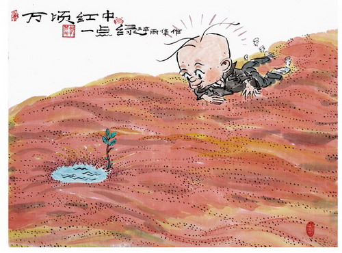 谭丽华 王 平(山东) 《万顷红中一点绿》