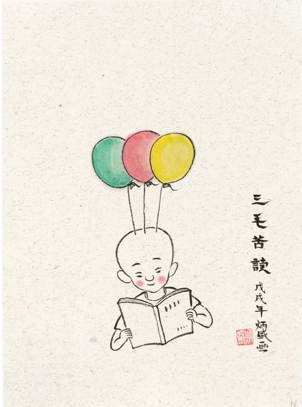 何炳盛 / 三毛苦读/ 41cm×32cm