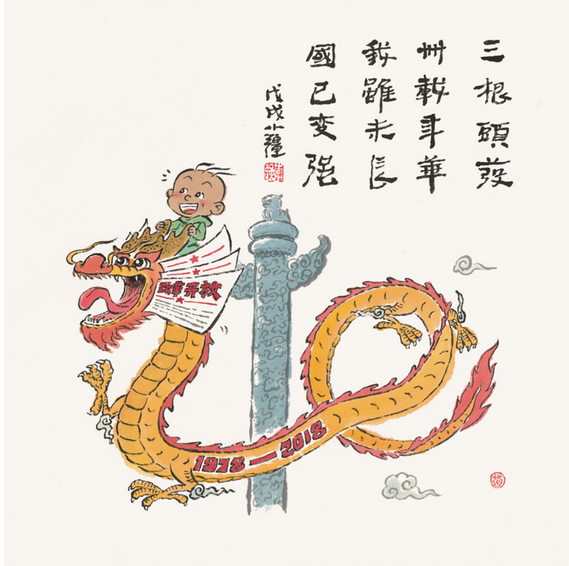 李强 / 三根头发 卌载年华 我虽未长 国已变强/ 45cm×45cm