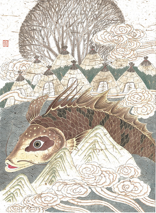 赫哲英雄故事之木竹林莫日根 / 李丹/ 44cm×31cm